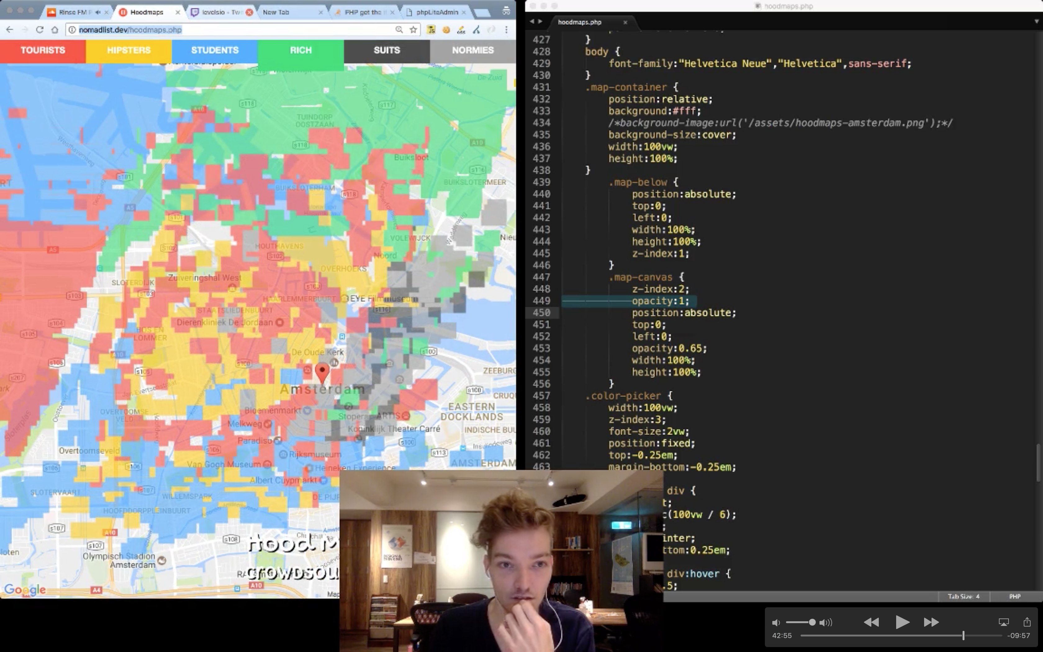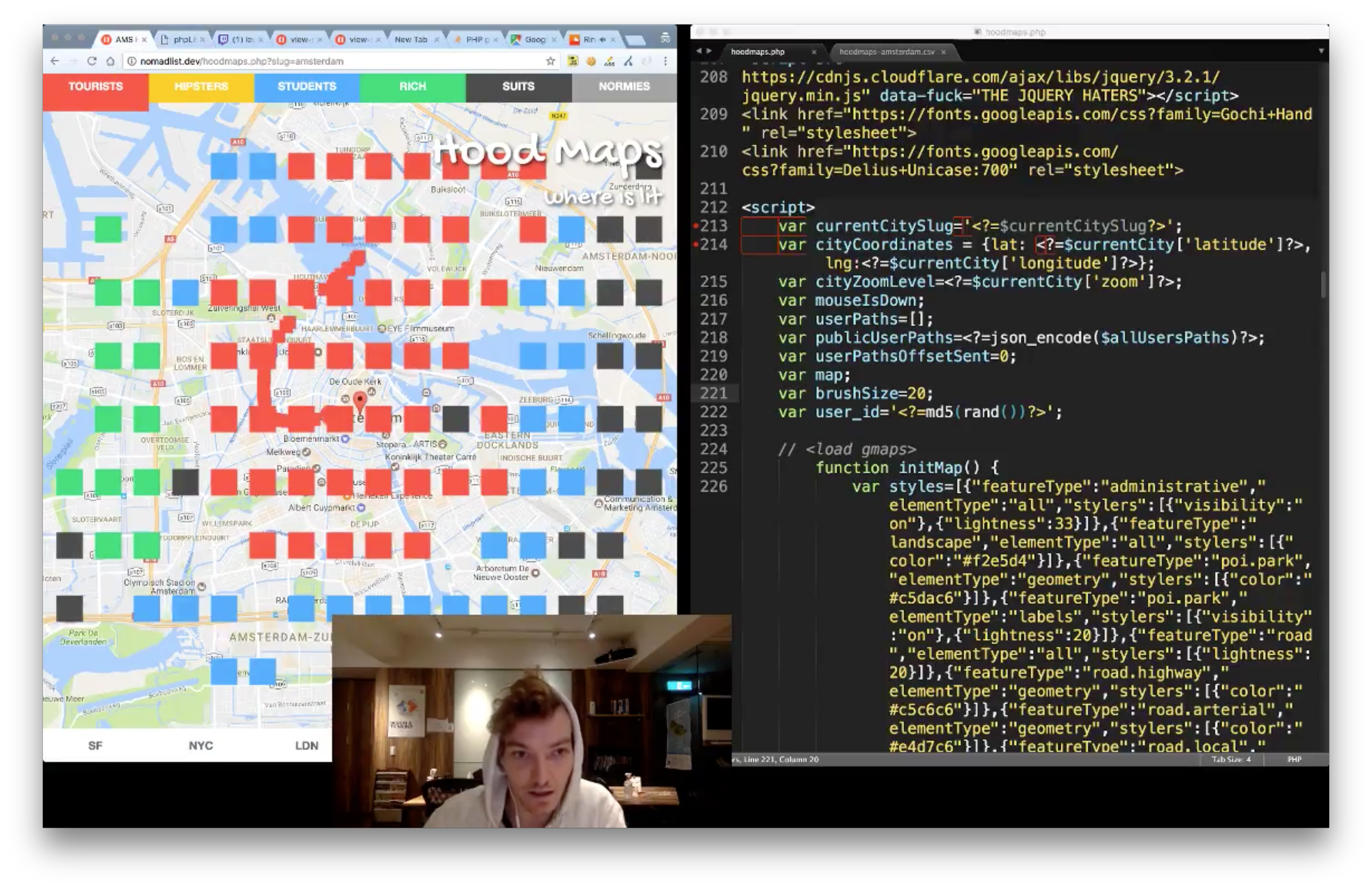 I start out with just plain HTML, CSS and JS and we see how far we get. At the end we have a functioning map that you can draw on with colors. We also put the page live in production (on Nomad List’s server but still):