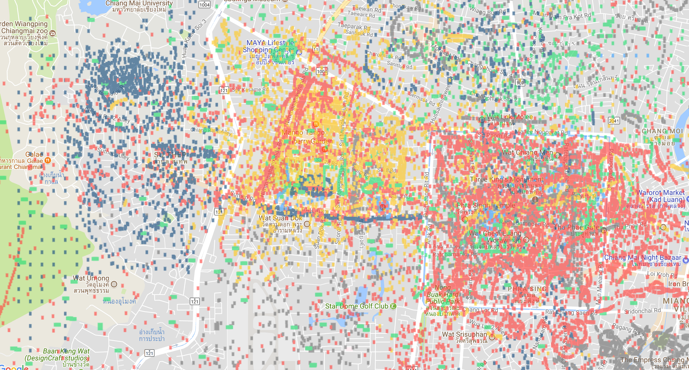 Another trick I did is at zoom levels above 12, which is near street level, I’ll first draw the rough normalized data (e.g. 53.233,4.138):
