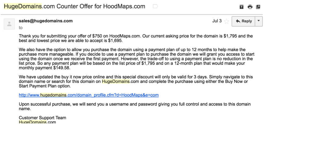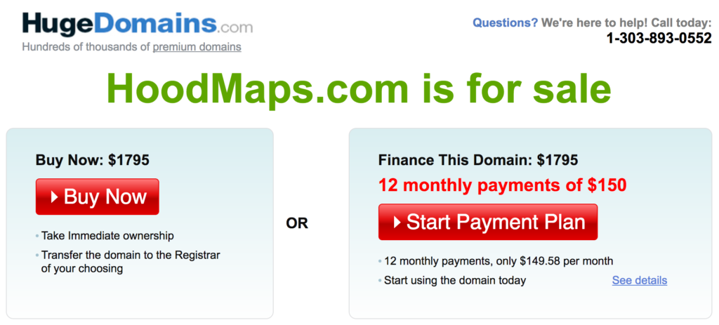 When I launched Nomad List as nomadlist.io in 2014, I had to negotiate down nomadlist.com from $8,000 to $2,000! It took ages and was still a lot of money. So, whatever, I’ll pay. But meanwhile the $1,695 offer had expired. So whatever, I’ll pay $1,795. I could use Nomad List’s revenue to pay for it. It burned though, that’s a shitload of money for something merely digital. If Hoodmaps would make just $2,000 back though, I’d already be proftiable. So I did it: