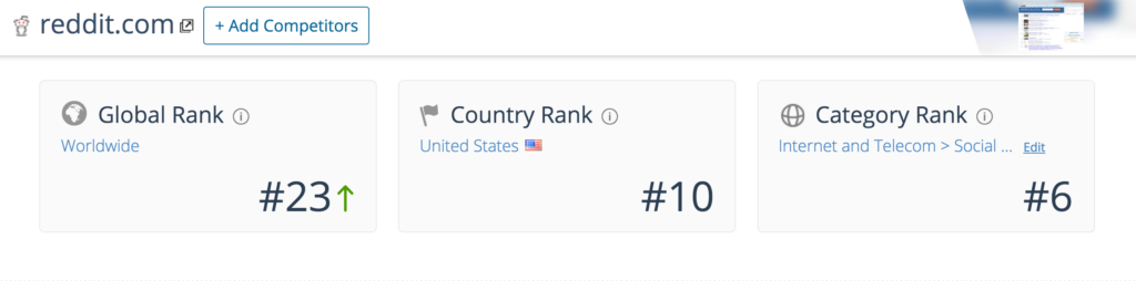 Where Hacker News is the #3069 most popular website in the world and Product Hunt is #4271, Reddit is the #23 website in the entire world: