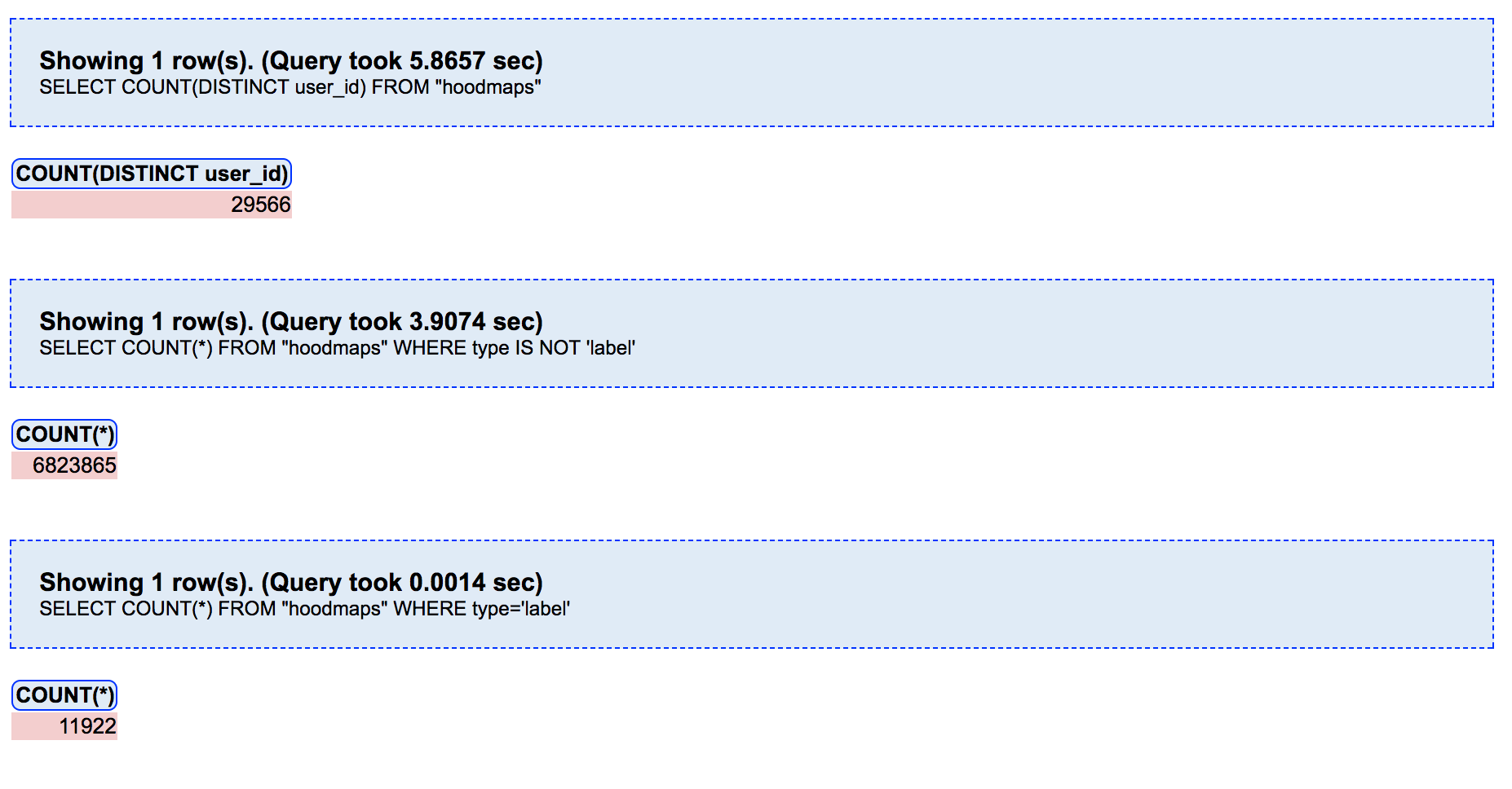 Of those 200,000 people, about 29,566 (or 7%) actually interacted and drew on the map. These people colored 6,823,865 points or about 230 points per user on the map. More importantly, they tagged 11,922 text labels on the map: from “Koreans that think they’re still in Korea” in Los Angeles to “Drink wine along the Seine” in Paris to “Gordon Gekko wannabes” in Manhattan.