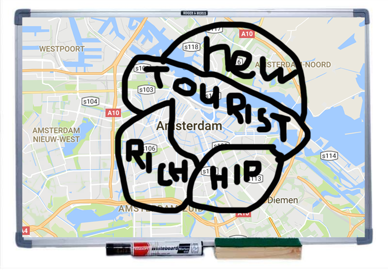 This problem has been going for years. When my friend Amy was visiting Amsterdam in 2015, she asked me where to stay. I drew her this map. This was basic but it gave the idea of at least to avoid the tourist areas: