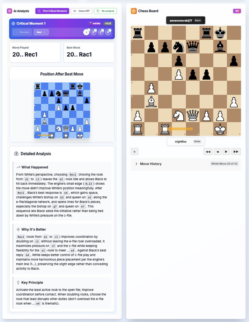 Critical Moments detection is now powered by GPT-5 the best model yet for chess understanding. This upgrade means: