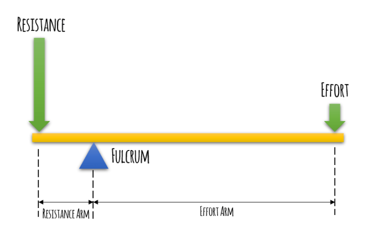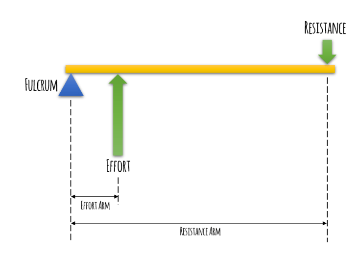Let’s observe the location of “Effort”, “Resistance” and fulcrum in the upper component: