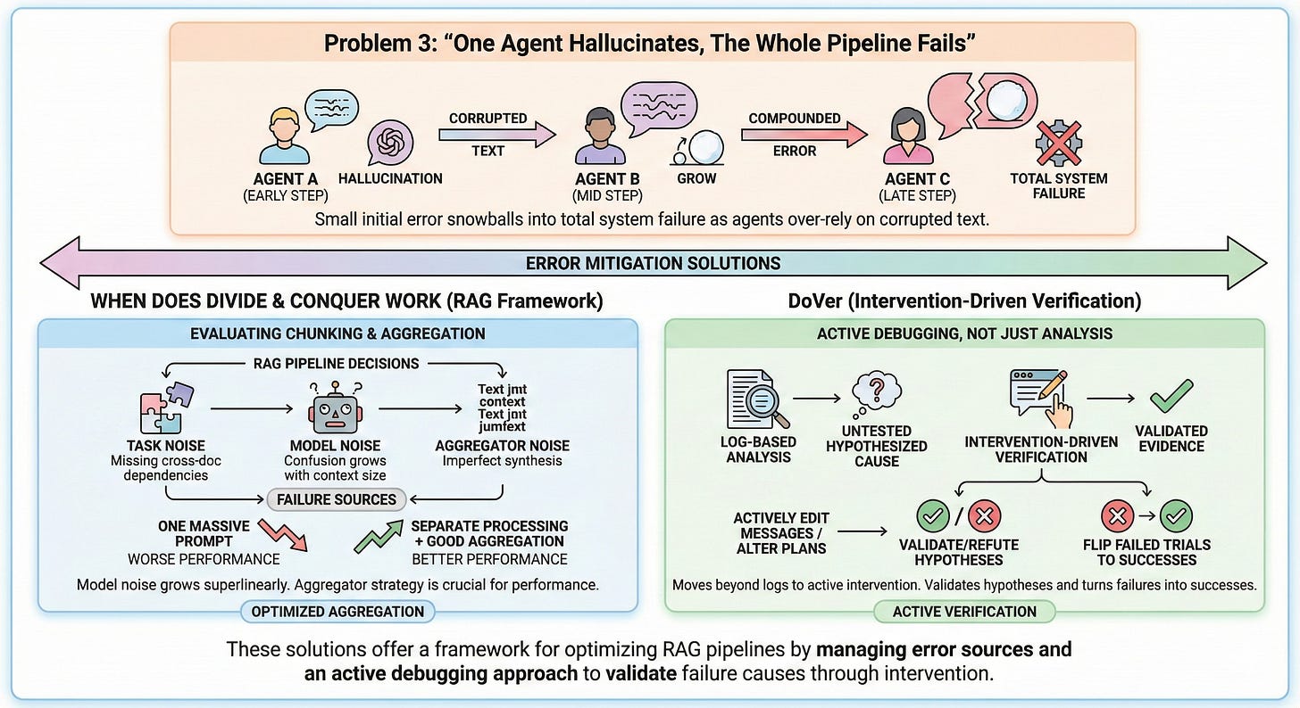 If you run a RAG pipeline, you have made chunking and aggregation decisions, whether or not you thought about them explicitly. When Does Divide and Conquer Work gives you a framework for evaluating those choices. It identifies three failure sources: task noise (when your chunks lose cross-document dependencies), model noise (confusion that grows with context size), and aggregator noise (imperfect synthesis of retrieved results). The key finding for RAG practitioners: model noise grows superlinearly with input length. This means stuffing all retrieved chunks into one massive prompt can perform worse than processing chunks separately with a weaker model and aggregating well. Your aggregator strategy matters more than you think.