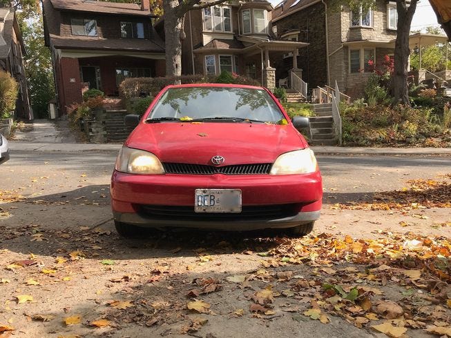 That meant my mother could keep driving her little Toyota Echo into her 90s, finally losing her licence when she lost control and scraped the sides of a few fancy BMWs and Mercedes (she lived in a wealthy part of town) She spent the next year hiring instructors, who all fled after a few minutes, and then failing the driving exam spectacularly- the examiner just made her stop the car, and I had to go pick her up. She was distraught and felt that she had lost her freedom, even though she lived on a streetcar line a few blocks from the subway- there are few places in Toronto that are less car-dependent, and I could literally push her in a wheelchair from her apartment to her doctor’s office.