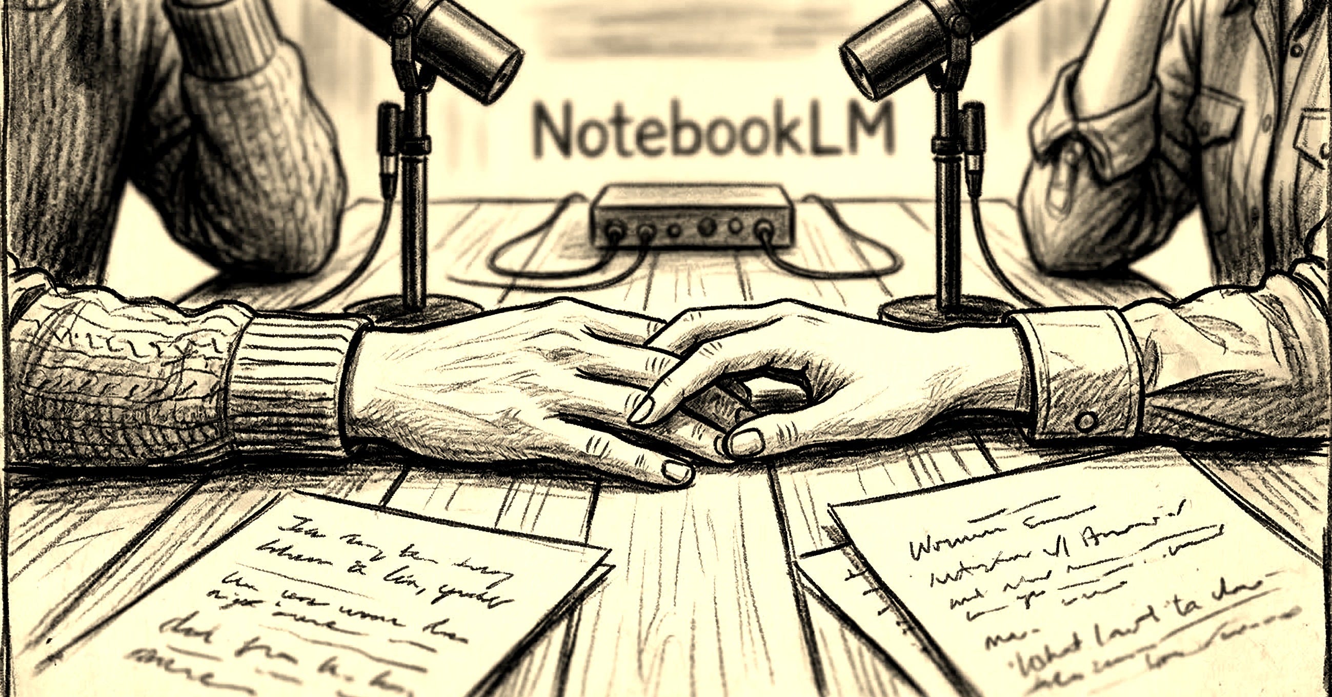 A fake academic paper fed to NotebookLM’s Audio Overview to see what happens when two AI podcast hosts discover that all male-female co-hosts inevitably fall for each other — and are asked to consider what that means for them. Seven fake studies, 4,218 fake dyads, very real awkwardness. Hit play.