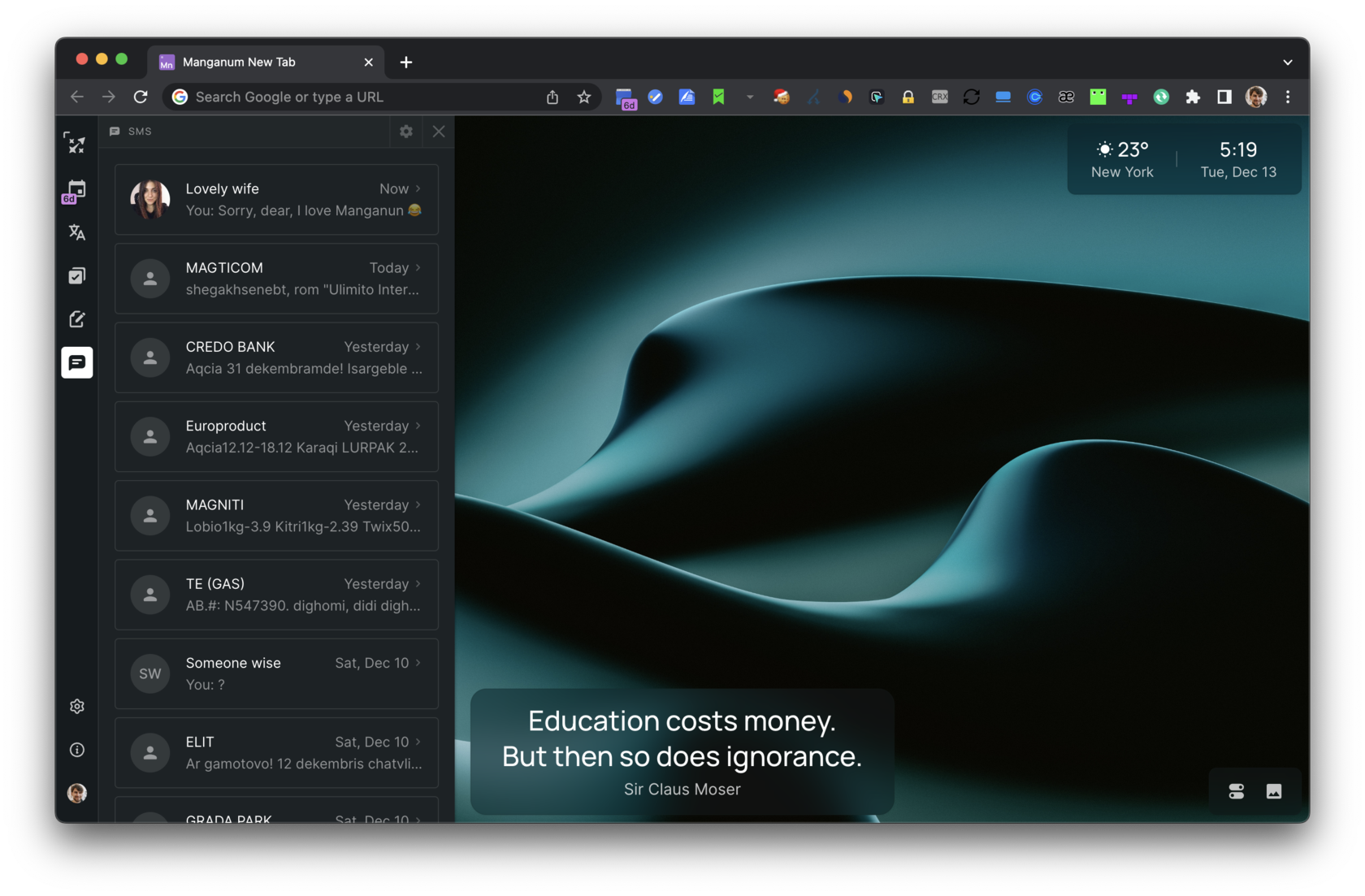 You can read SMS directly in the Manganum extension while your Android is in your pocket.