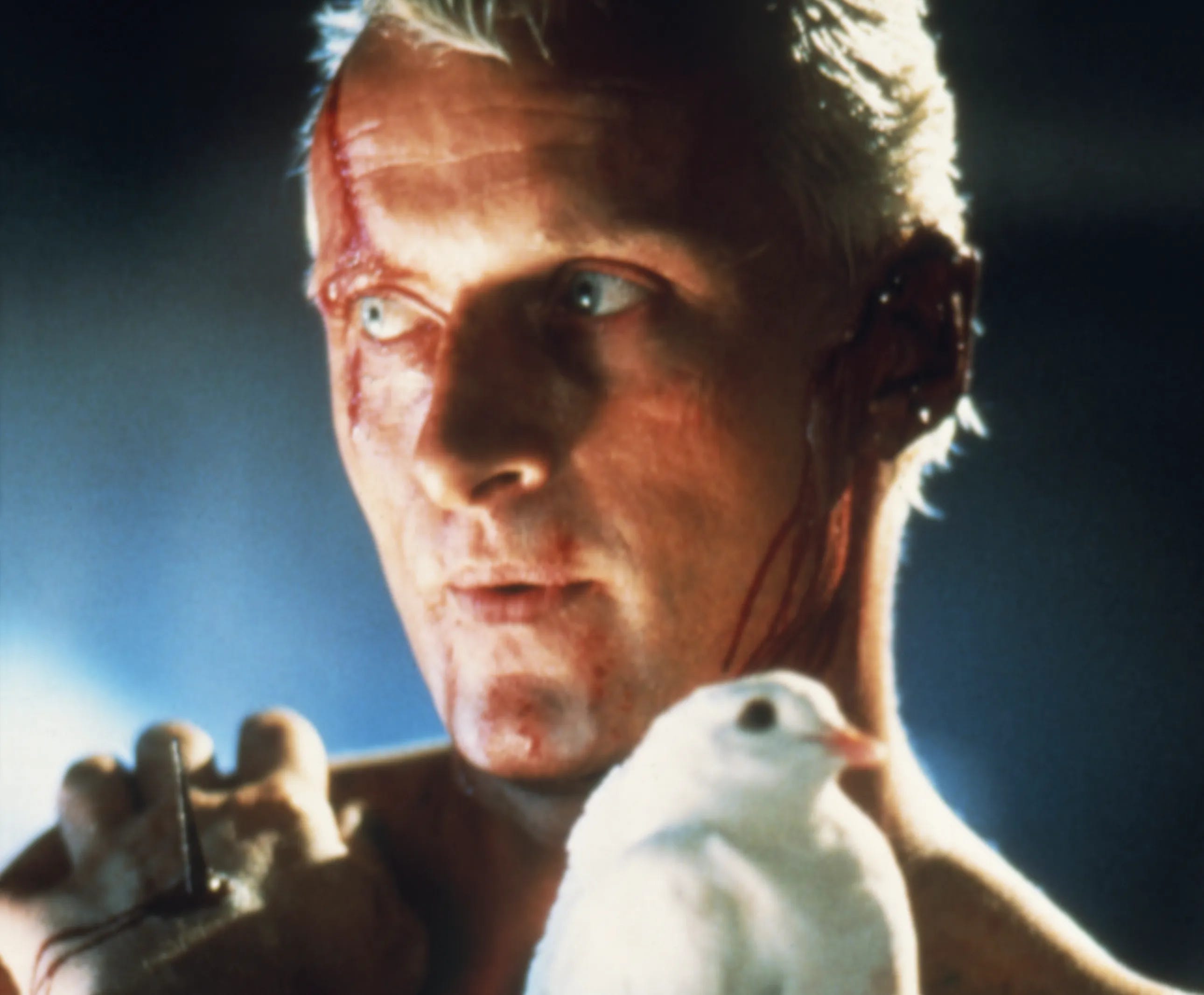 Rutger Hauer, non-human being in Bladerunner, who does indeed feel emotions.