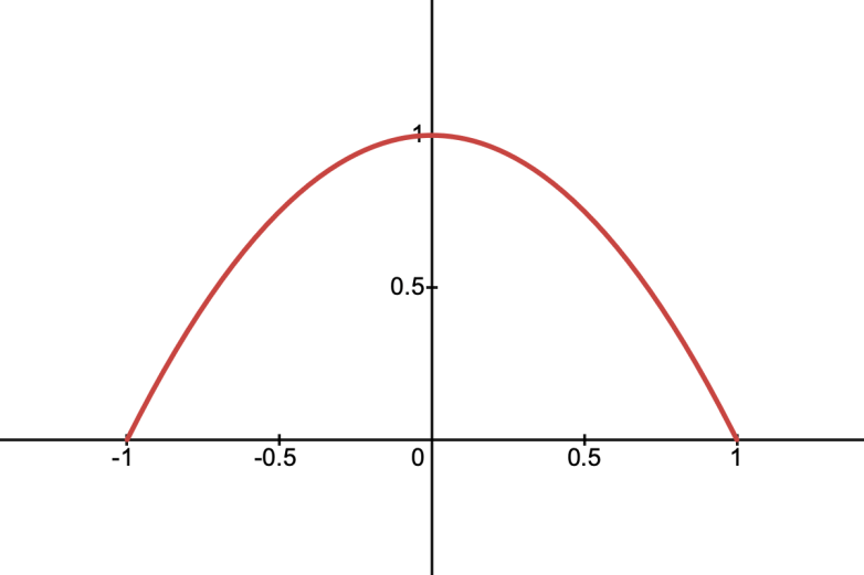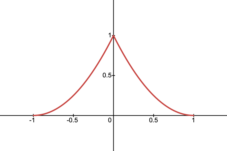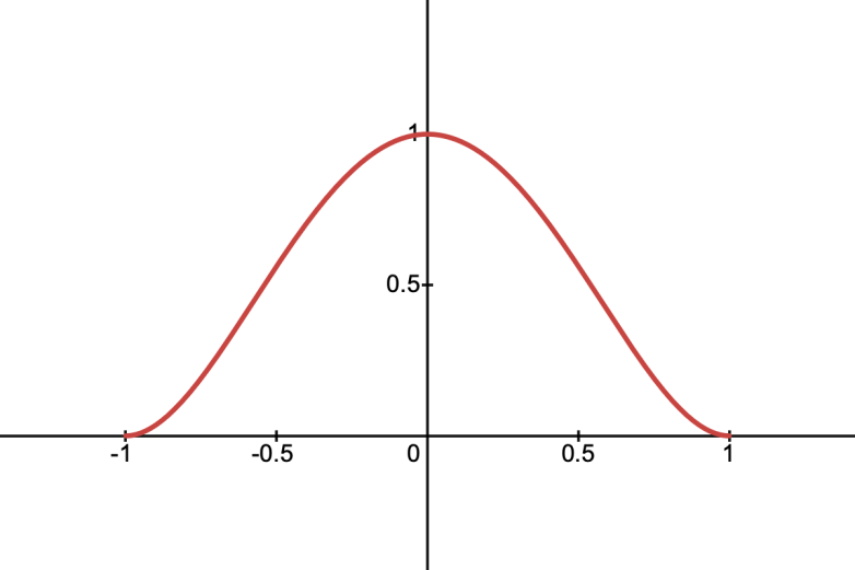 This is a density function which peaks sharply in the centre and falls off smoothly to zero at the boundaries. It’s defined as: