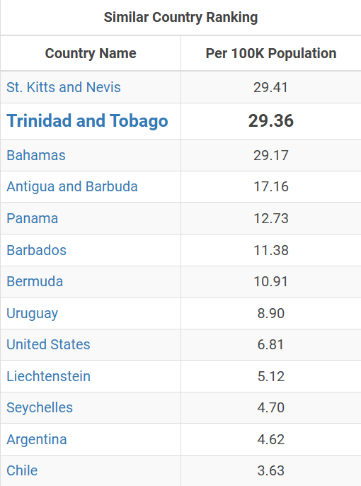 I later told a pair of locals I did this and they were shocked. I asked why. They told me that it’s one of the most dangerous parts of TT and I shouldn’t have gone there at all. I told them that I drove there at 10 AM in broad daylight on a Tuesday. They said that didn’t matter, that I easily could have been stopped in my car and mugged at any time. These two – a husband and wife who ran a successful business – also said that crime was the single worst part of living in TT and the primary reason they were trying to emigrate. Using 2021 numbers: