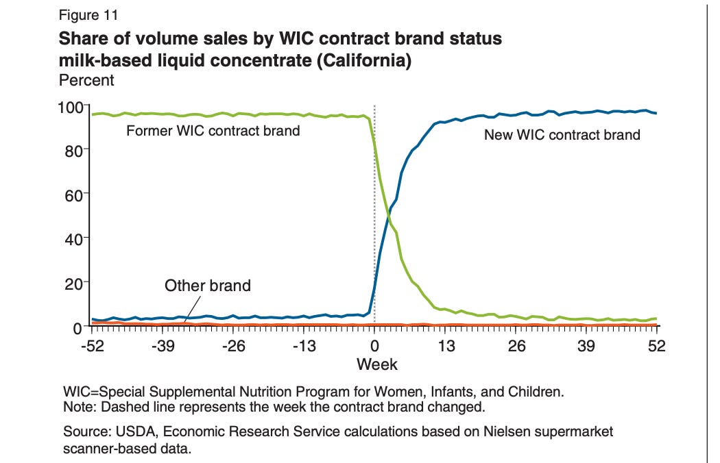 This rebate system distorts the entire market in a state, because it’s just not worth having alternative formulas on a retail shelf if half of the buyers simply cannot purchase those formulas. As a result, the market tips to the WIC supplier, and that supplier raises prices on non-WIC recipients, and does so by between 26-35%.