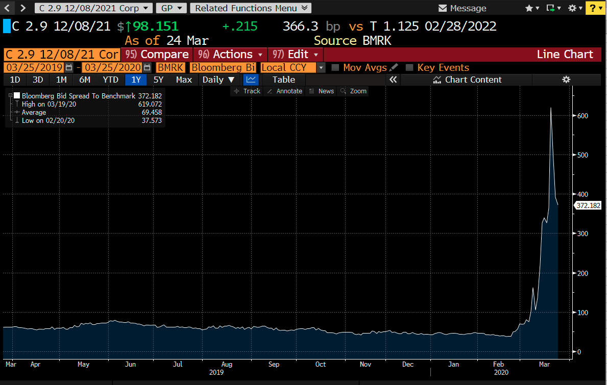 There’s more. This is a long bill, but to give you one simple data point, here’s what happened to Citibank’s bonds over the last few days.