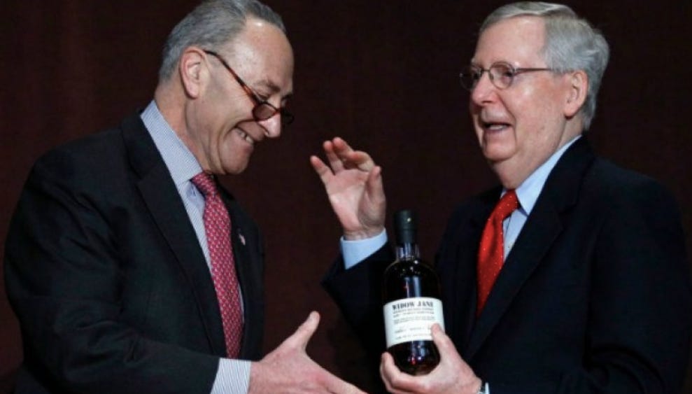 But then these two Senators, Chuck Schumer and Mitch McConnell, cut a deal last night. And from what I can tell, it’s really really bad, and much of the bad stuff is not being included in the sleazy marketing materials from Schumer and McConnell, or in the reporting about the bill. There’s a reason for that. Sunlight would kill this thing.