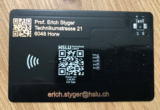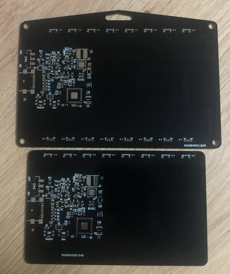 The laser engraving enables to create custom business cards on demand, using the same PCB: