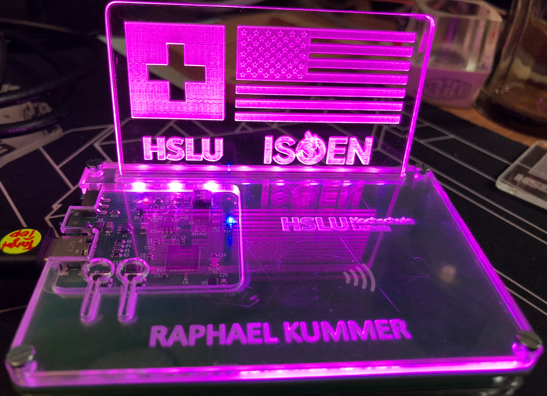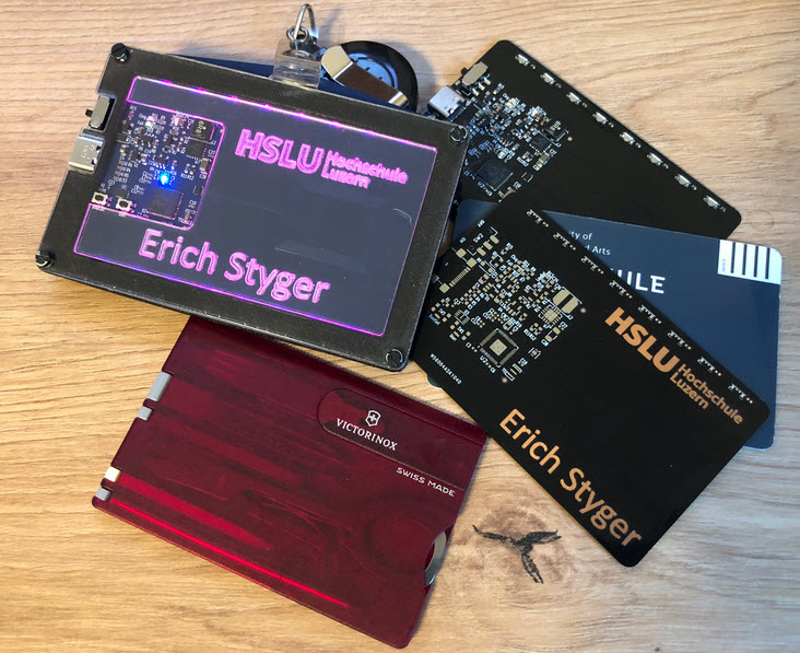 In case you are looking for an unusual business card, company badge or event badge holder, then this article is for you: A DIY RFID badge and business card with bling-bling addressable RGB LEDs to impress your customer, clients, friends at work or at a conference, packed with electronics. Plus it includes 10 original tools from Victorinox, the manufacturer of the Swiss Army Knife.