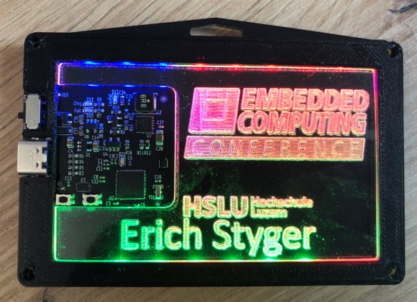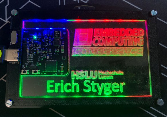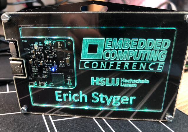 Another usage is to use it as conference badge (below for the Embedded Computing Conference):
