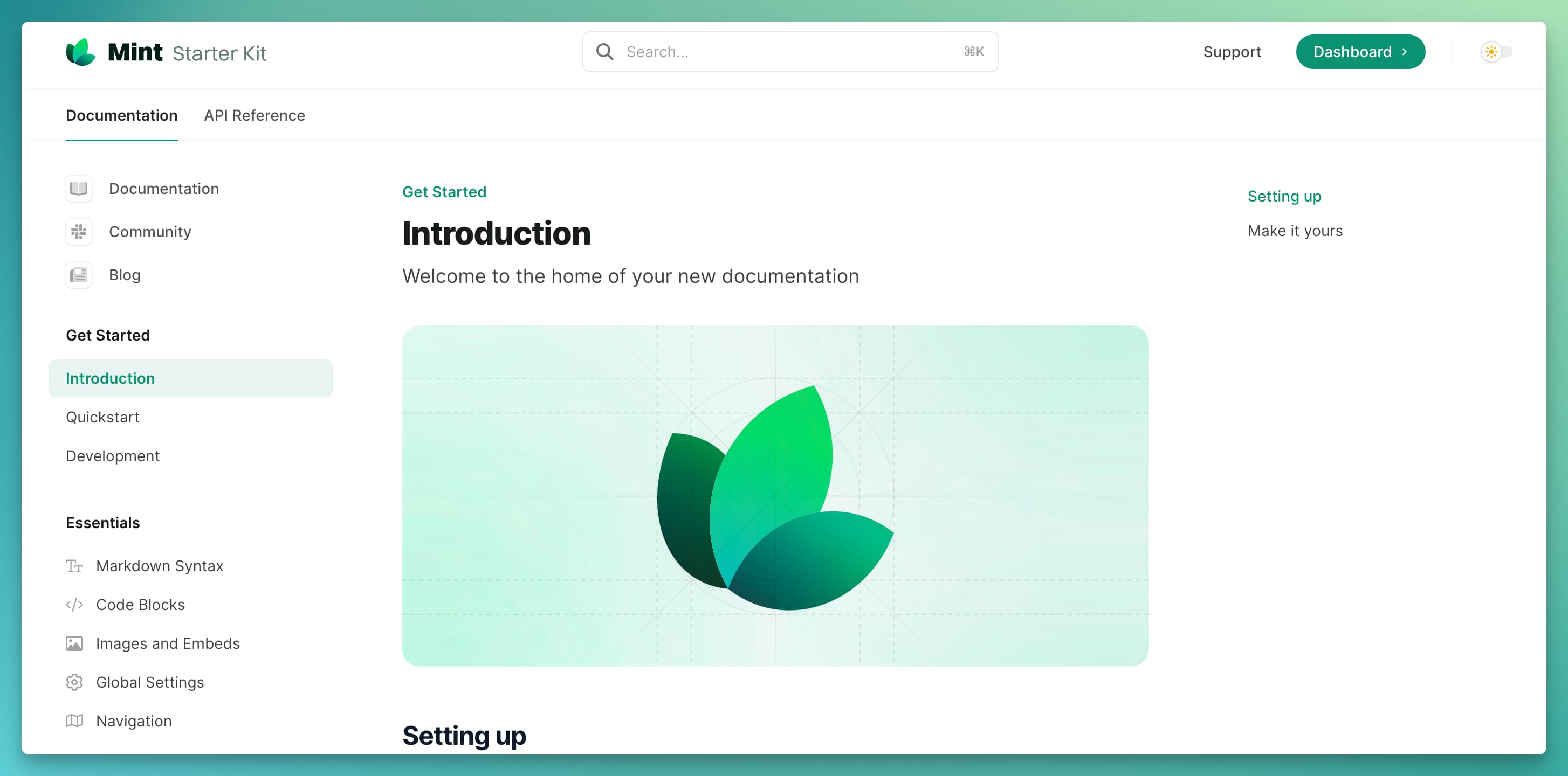 As a developer-focused product, Mintlify offers both ends of the spectrum based on how much users would like us to exert our opinion on their documentation and how much time they'd like to spend building it.