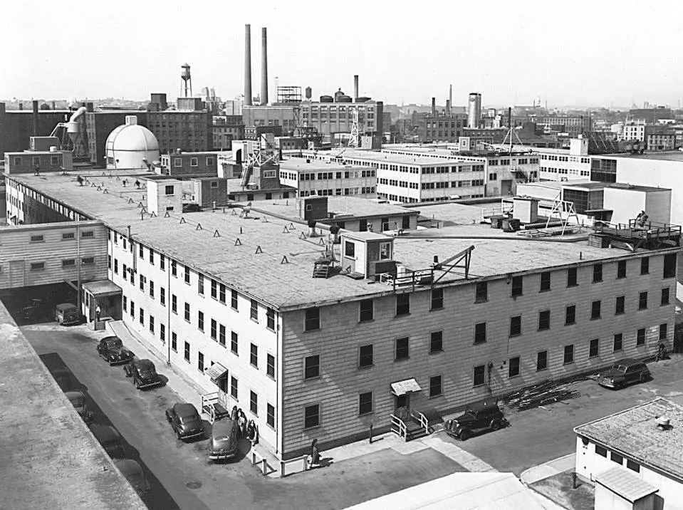 MIT's Building 22 with Building 20 in the background, 1944. Courtesy MIT Lincoln Laboratory.