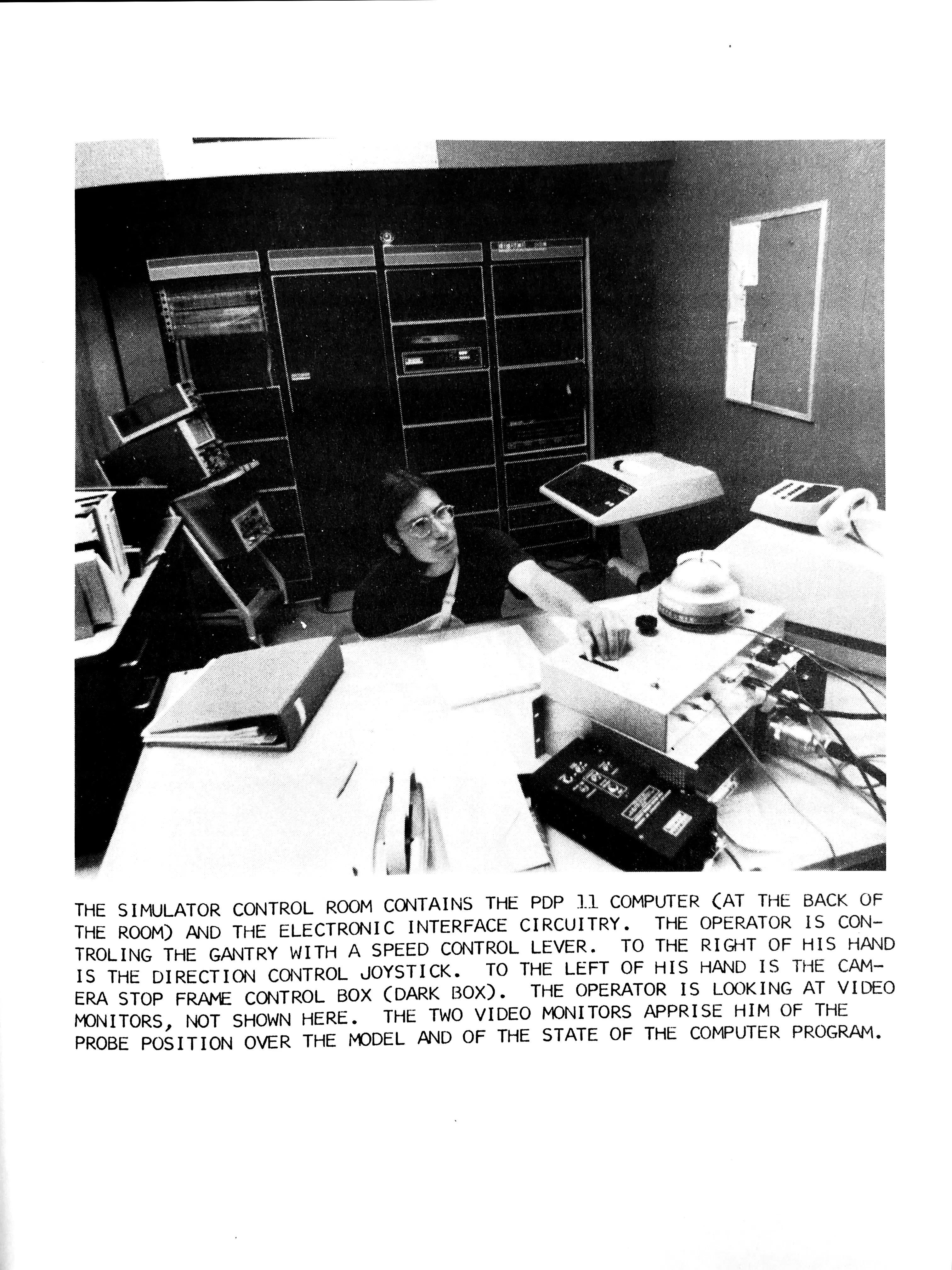At Berkeley, Dykstra looked for help. He found it in the staff of an aging Federal Aviation Administration landing simulator located seven miles north at the UC’s Richmond Field Station. Constructed in 1961 using synchronized motor systems and a full-size cockpit on overhead tracks, the simulator building sported an enormous, slanted profile, covering a 1:10-scale model runway. As a war-surplus cockpit slid down tracks hung from the building’s roof, the space could be filled with fog to simulate low-visibility landings and test a variety of visual safety systems. The system’s “Principal Electronic Technician,” Karl Mellander, had consulted already with Appleyard on the NSF proposal; Dykstra would collaborate even more with two of the simulator’s staff, Jerry Jeffress and Alvah Miller.