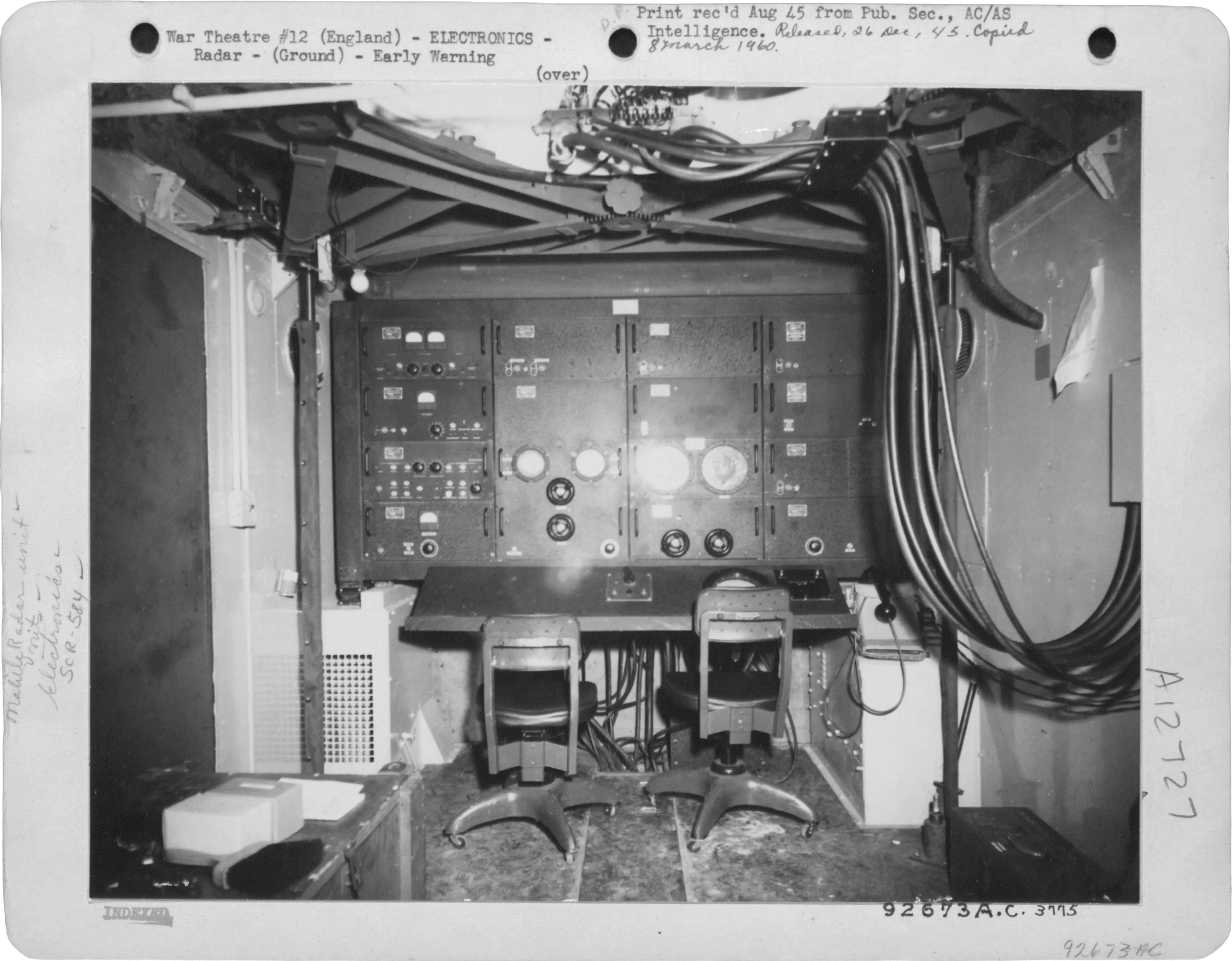 View Of Operation Positions Of Scr-584 Radar Of The 124Th Aaa Battalion At Dymchurch, Kent, England, On 4 August 1944. Note Plan Position Indicator (PPI) CRT at right-hand operating position. National Archives and Record Administration, College Park.