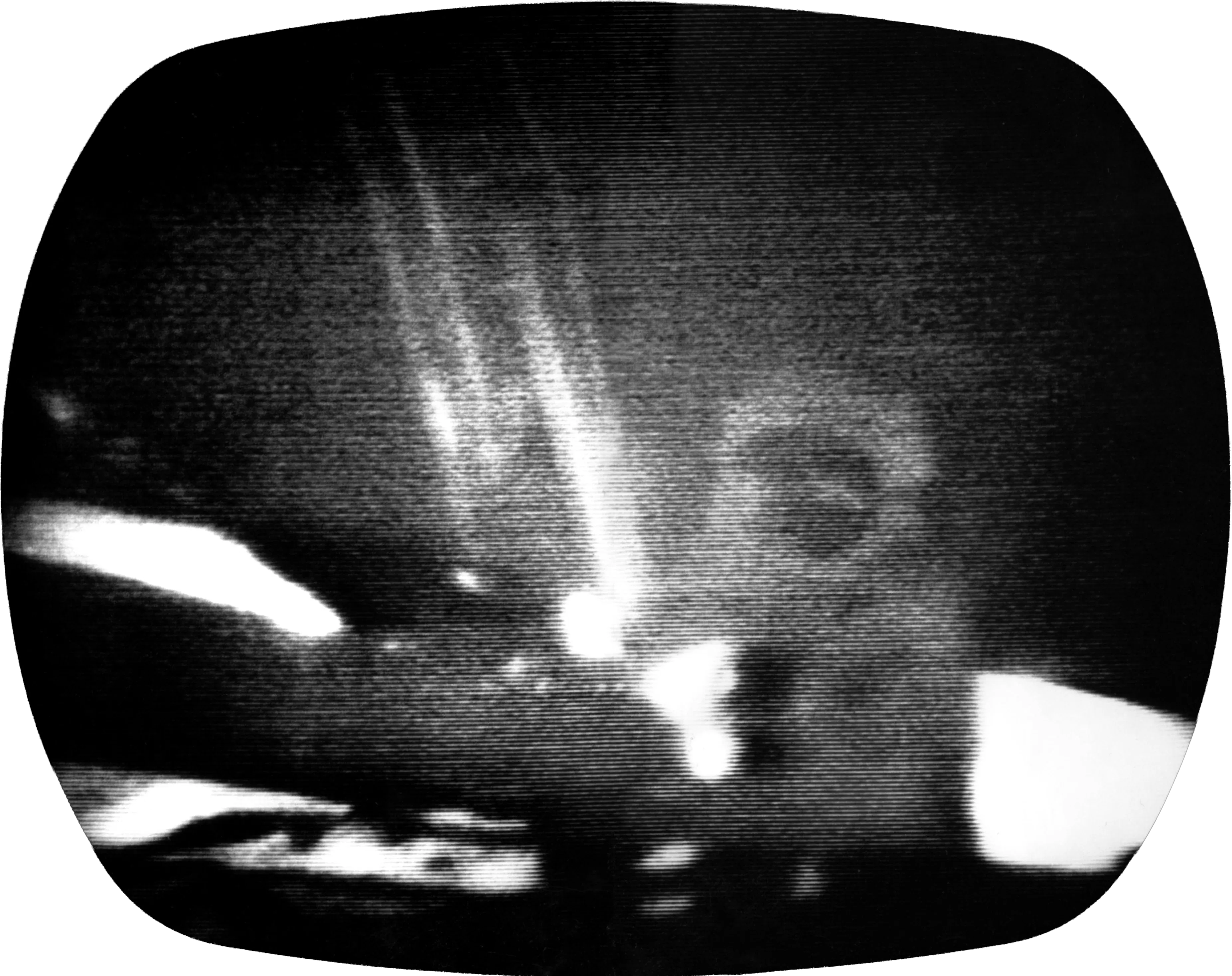 Neil Armstrong stepping onto the lunar surface. Screen capture from television broadcast. Courtesy Joel Banow Collection, National Air and Space Museum, Smithsonian Institution (JBC-SI)
