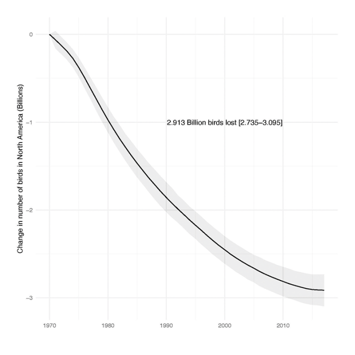 The computation Smith had just finished that day in May 2019 combined individual population estimates for 529 bird species, from the most common sparrows and robins to rarities hardly ever seen. When Smith pulled these estimates together and adjusted each for its degree of certainty, the findings came down to a single ski slope of a chart. It showed a precipitous drop in nearly all these species in every part of the continent. At the bottom sat four lone digits—2.913. That’s the number of breeding birds in billions that had disappeared since the early 1970s. He had documented an accelerating churn of seasonal losses that slowly took their toll on the abundance of birds. And it translated to an astounding third of the adult birds that not long ago filled North America but now are gone.