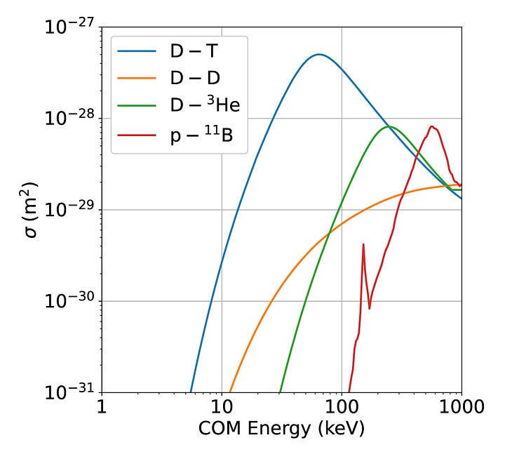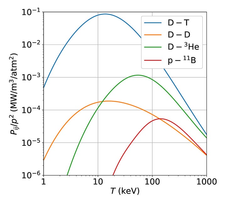 Anyone attempting to build a fusion reactor with “alternative” fuels such as D-D will either need to create extraordinarily high pressures, build an extraordinarily large reactor, or produce extraordinarily little power. In sci-fi fantasies, we can imagine fusion reactors powered by limitless D-D fuel confined at extremely high pressure. But in the real world, physicists have no credible pathway to confining plasmas at such high pressures. Barring some unlikely moonshot breakthrough, we seem to be stuck with D-T fusion.