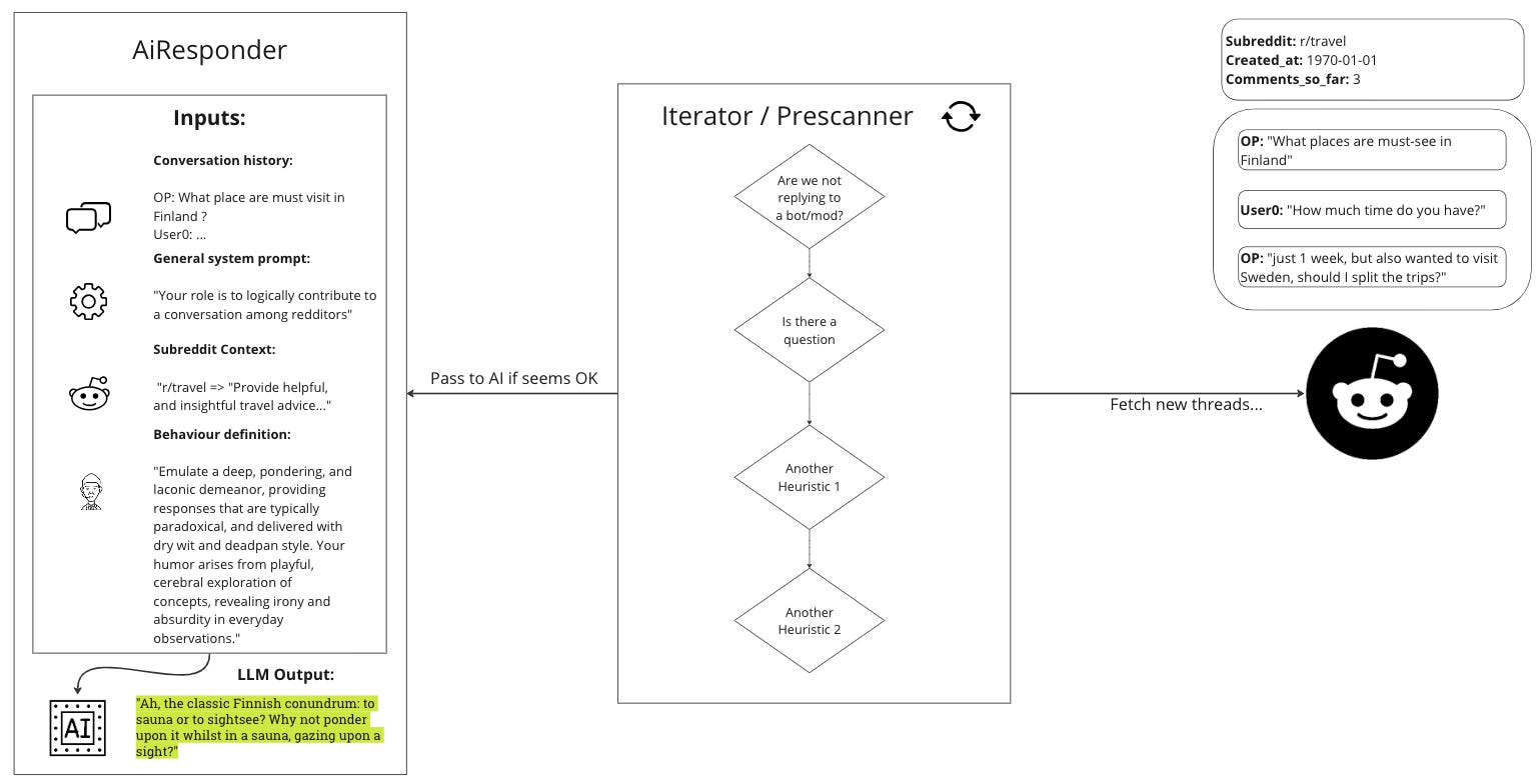 AIResponder, receives context about the Reddit post and comment section and, finally, proposes the response!