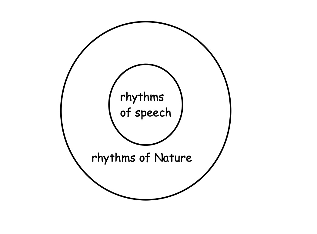 “Meter was our first contact with Nature and with consciousness. Indeed, before we could fit words to sense, we heard rhythm, the rhythm of the people around us speaking. As infants we desired to find a pattern in what they said, a regularity by which we could make sense out of things. Our parents helped us along by speaking to us in patterns. They made alliterative sounds. Ba-ba. Ma-ma. They sang to us in nursery rhymes using all manner of tones.”