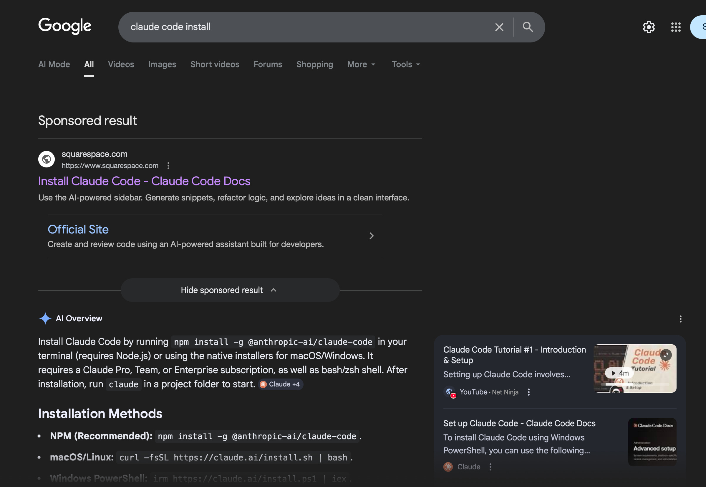 Unfortunately, I didn’t have ublock installed yet, and I clicked the first link..Some of you can see where this is going.