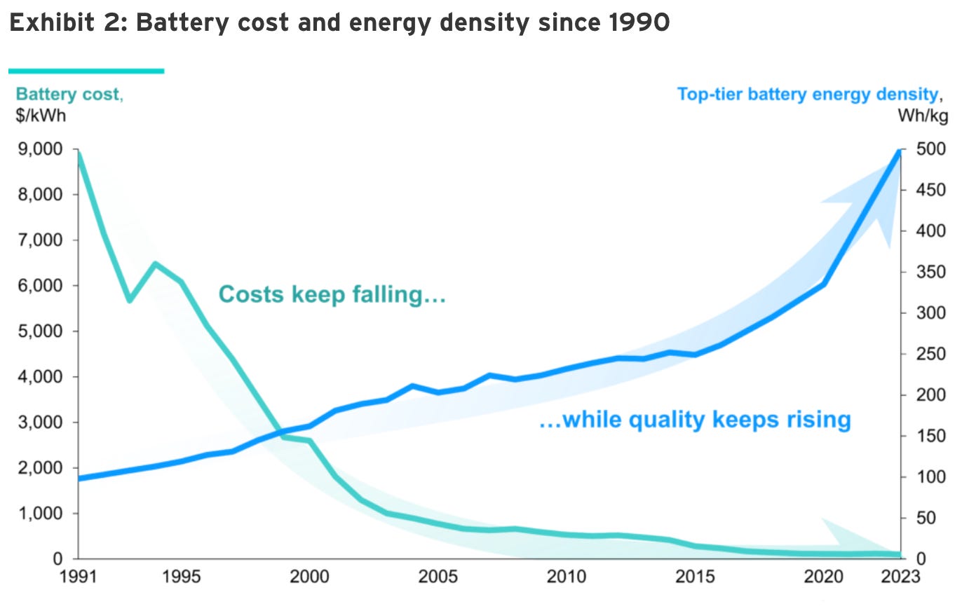 And gas is becoming less important too, because there has also been huge progress in another energy technology — batteries:
