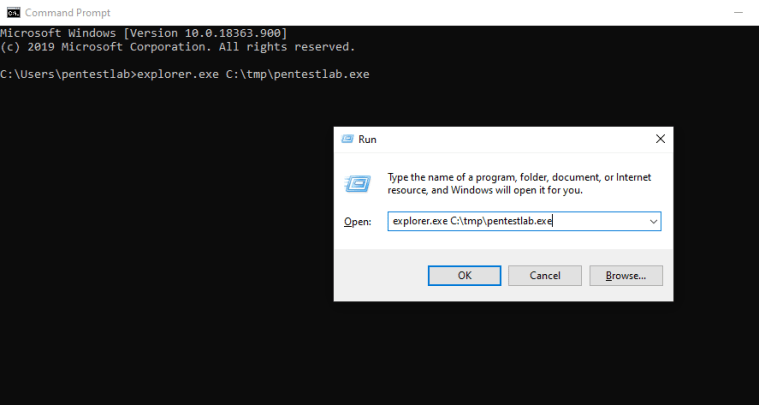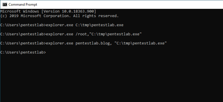 explorer.exe pentestlab.blog, "C:\tmp\pentestlab.exe"