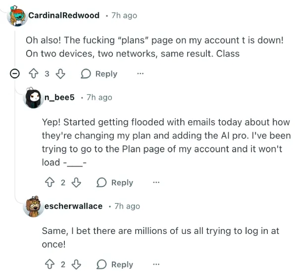 Adding to the chaos, Ring’s account plan pages also went down as thousands of customers tried logging in to figure out what was happening. The chat support system funneled everyone to a bot that couldn’t help. Phone wait times stretched past 30 minutes.