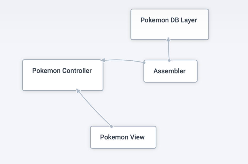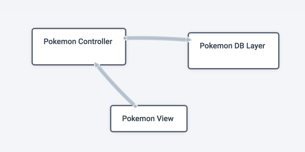 In our example above, the Pokemon controller gets the instance of Pokemon DB Layer by directly instantiating it. This makes it rather coupled with a specific implementation of the Pokemon DB Layer.