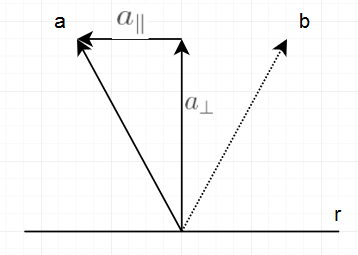 Let’s say we want to reflect the vector a in the picture below on the normalized vector r, to get the resulting vector b: