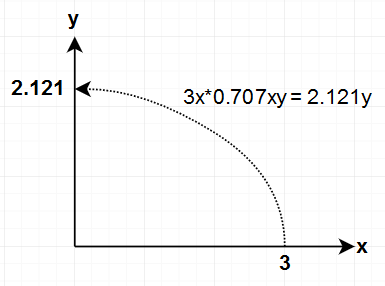 The original vector was already rotated 45 degrees on the yz plane, so this rotation started off at a 45 degree angle and it rotated 90 degrees on the yz plane. Then it scaled the result by 0.5, giving us the result vector . (the bottom of the teal plane)