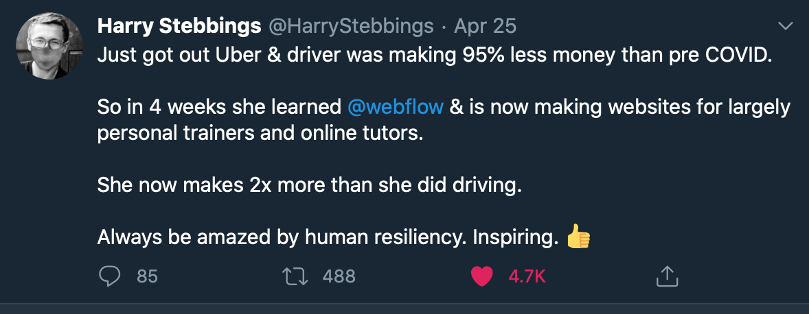 We are also seeing a huge shift into below the API gig economy from people who were unlucky to be caught in a situation where their current business model became irrelevant overnight. Without re-skilling and without fixed assets to put to use in other ways, there would be more people and businesses in invisible markets governed by algorithms over the next 6-18 months.