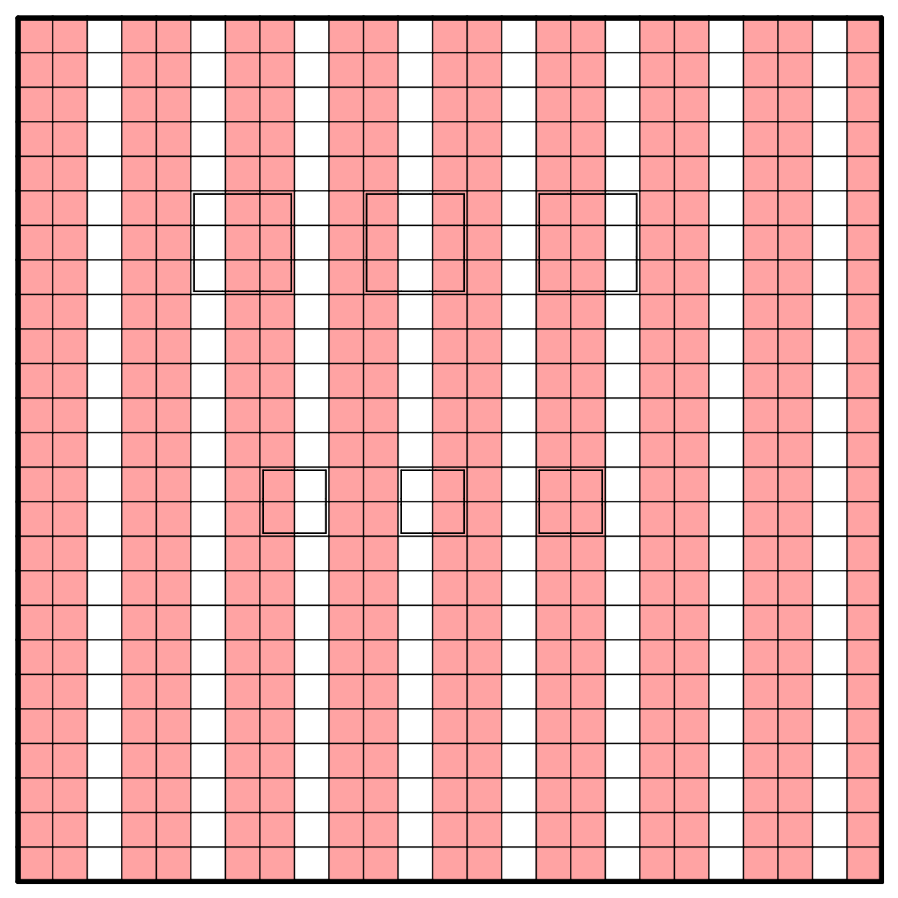 - If $n$ is $5 \bmod 6$, the same argument can be made using the same pattern but shifted right by one column (so that the leftmost column is not colored). This creates a coloring with the exact same property. Therefore a tiling does not exist in this case either.