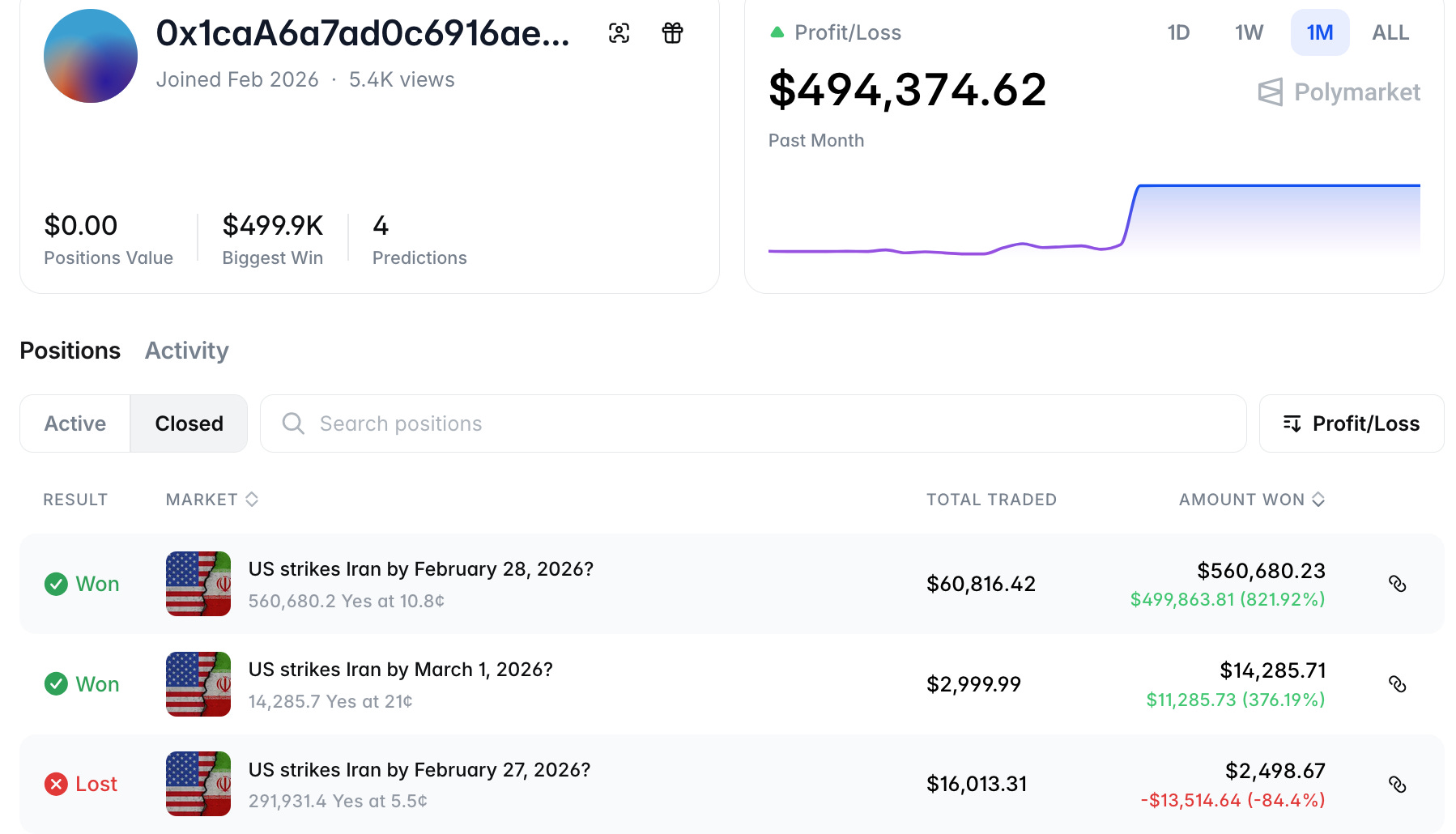 The latest incident involves betting on the precise date of the US strike on Iran. Six wallets were opened shortly before the strikes, bought large numbers of contracts referencing the event, and banked $1.2 million in profits in a matter of hours.