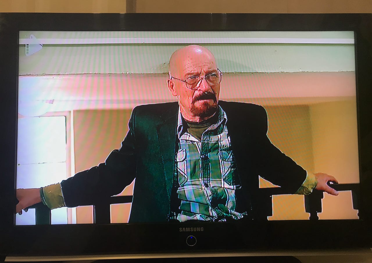 The following day, I caught some Iranian state TV with my mother-in-law and realized that we were in fact watching a rather well-done recreation of Breaking Bad. It was the famous “Fly” episode. Here’s the Iranian version of Walter White, gazing scornfully at the Iranian version of Jesse as they struggle to make sufficiently pure crystal meth: