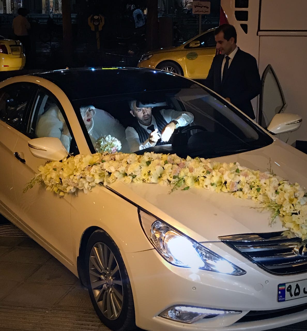 Walking through downtown Shiraz at night, I happened to pass right in front of a wedding party. Here is the bride arriving at the reception: