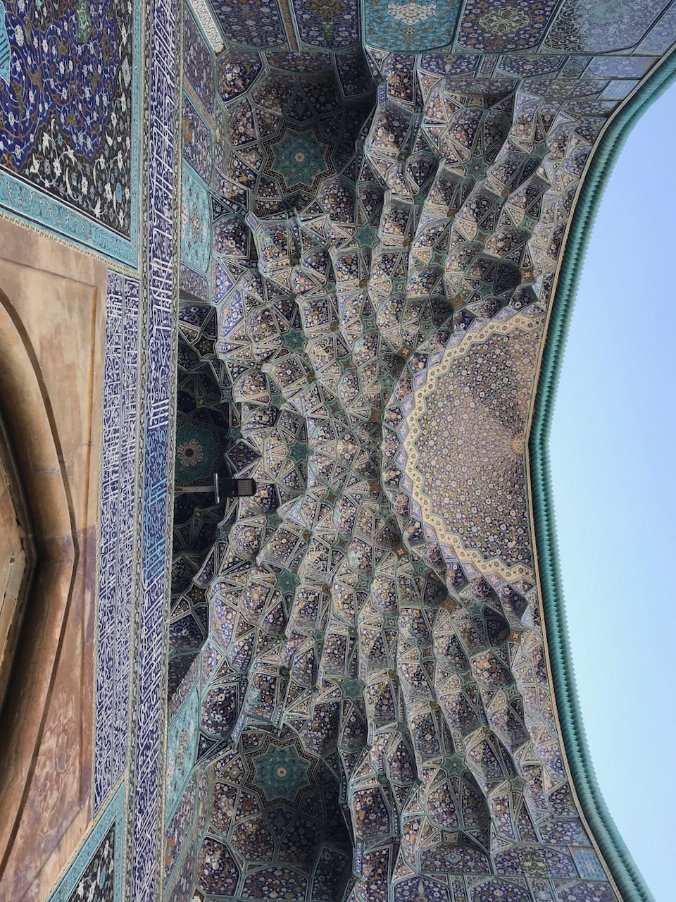 Jameh Mosque, which adjoins the square, is the most extraordinary example of Islamic geometric tiling I’ve ever seen. It is literally jaw-dropping, and photos like this don’t really do it justice: