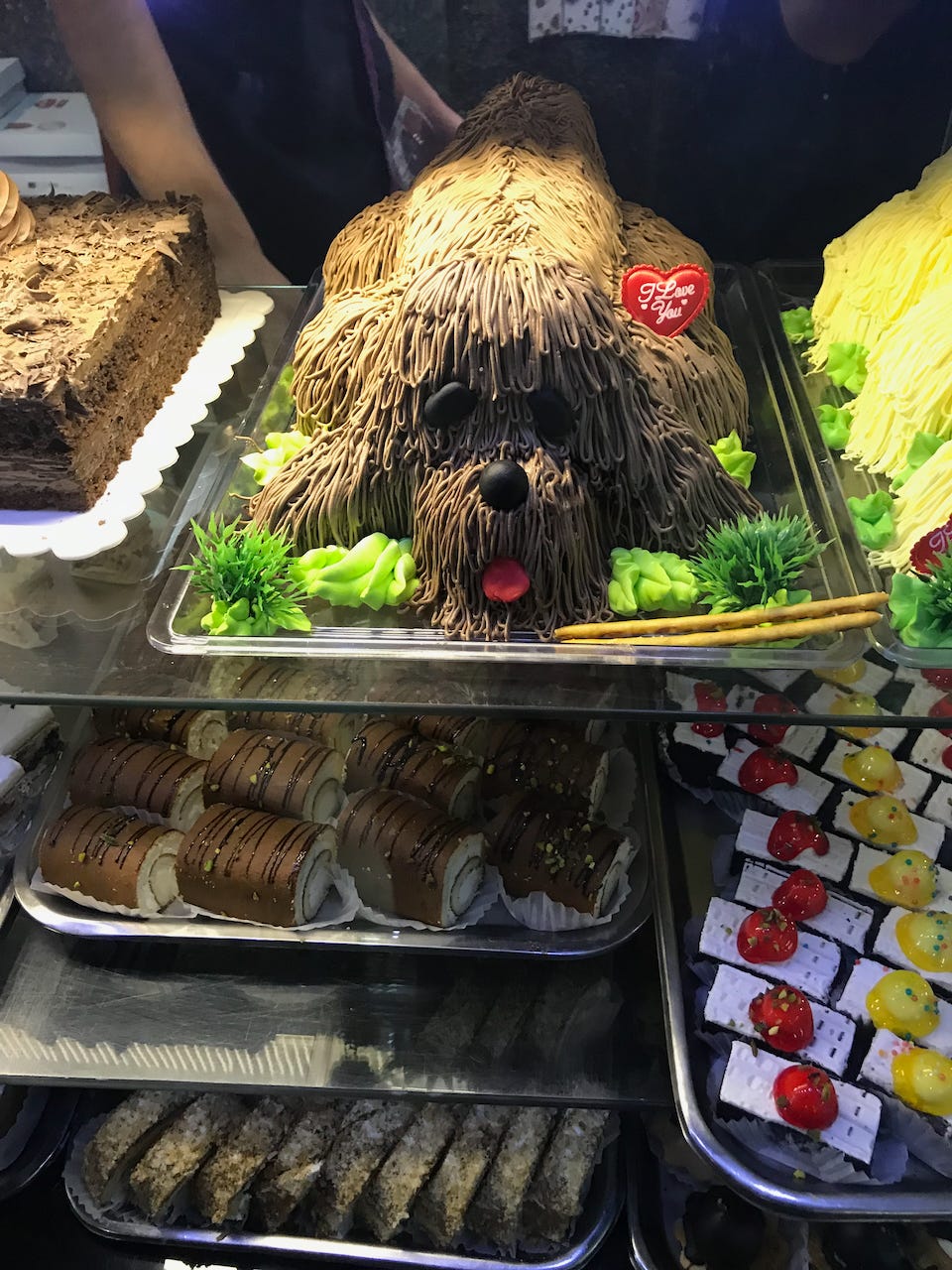 I was deeply charmed by Tehran’s bakeries, which are abundant, much beloved by the populace, and home to lots of original creations like this poodle cake.
