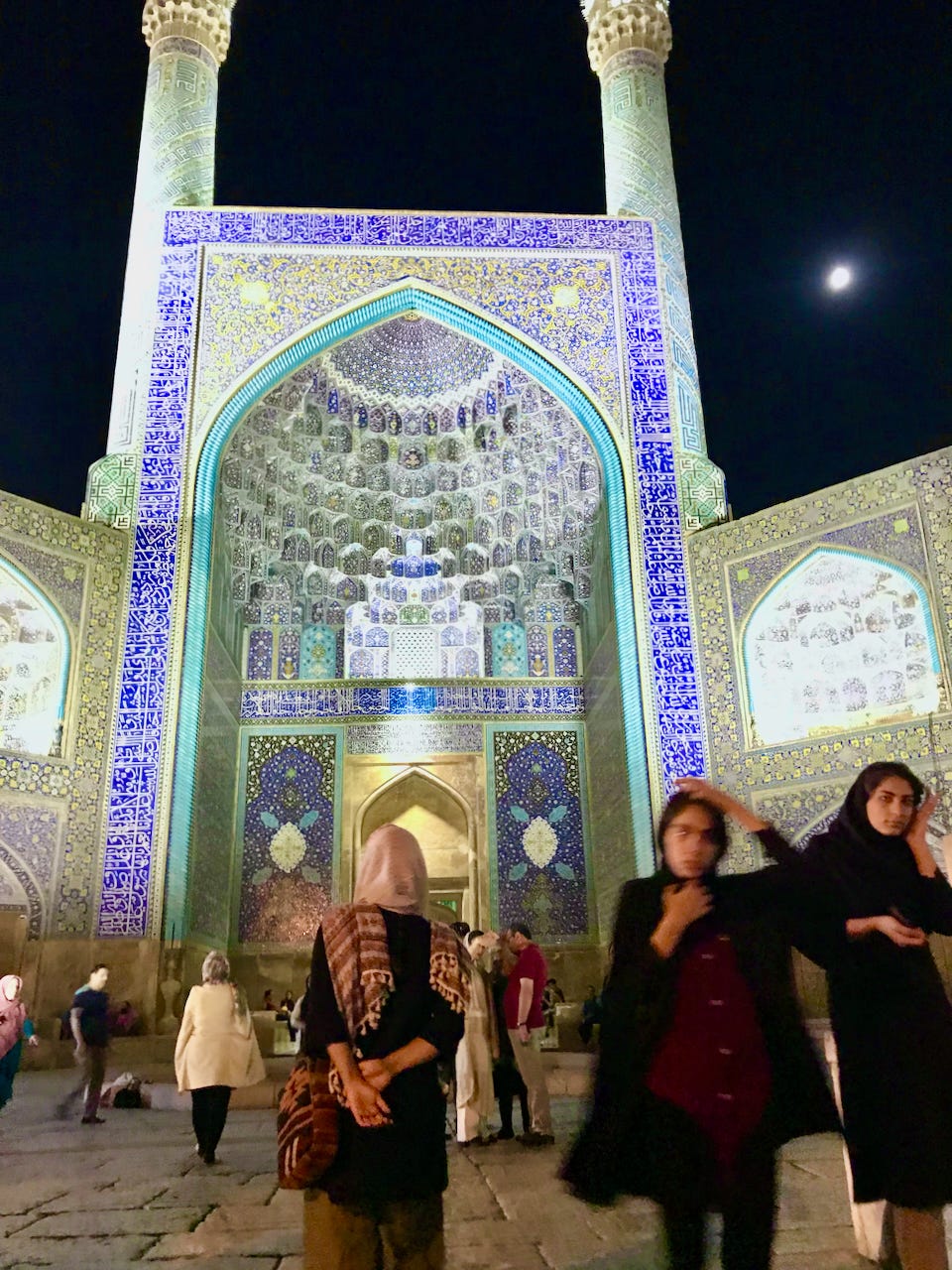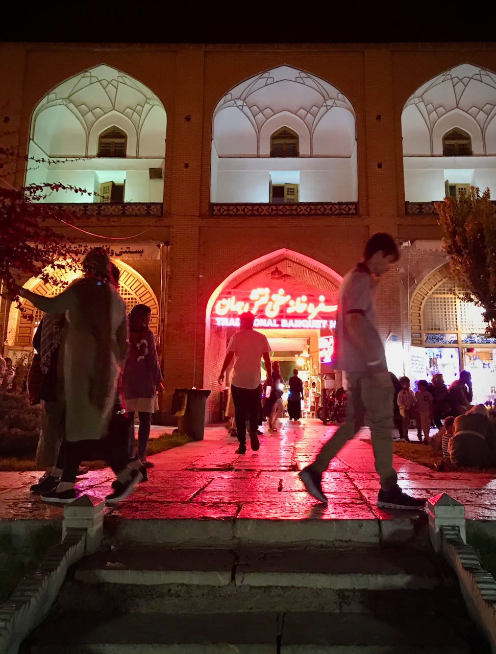 Traveling south from Tehran for about five hours, you reach Isfahan, which was the capital of the Persian empire under the Safavids and a major destination on the western edge of the Silk Road. Indeed, to a striking degree, it still feels like a city on the Silk Road, only now with lots of LED lights.