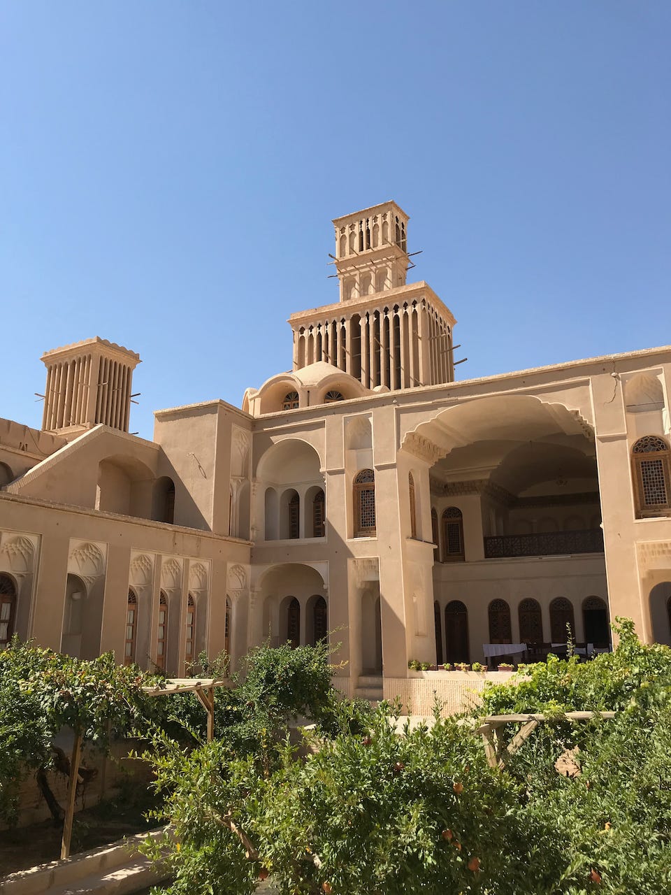 Finally, we wrapped up our roadtrip in Yazd, a city that Marco Polo visited and seems to have greatly enjoyed. I don’t think I’ve been anywhere besides possibly Oxford or Sienna that is so well-preserved as a premodern cultural site. The architecture both in the city and in the extremely arid region around it still preserves the ancient Persian architecture of qanats and Windcatcher towers designed to channel water and cool air through one of the hottest places on earth.