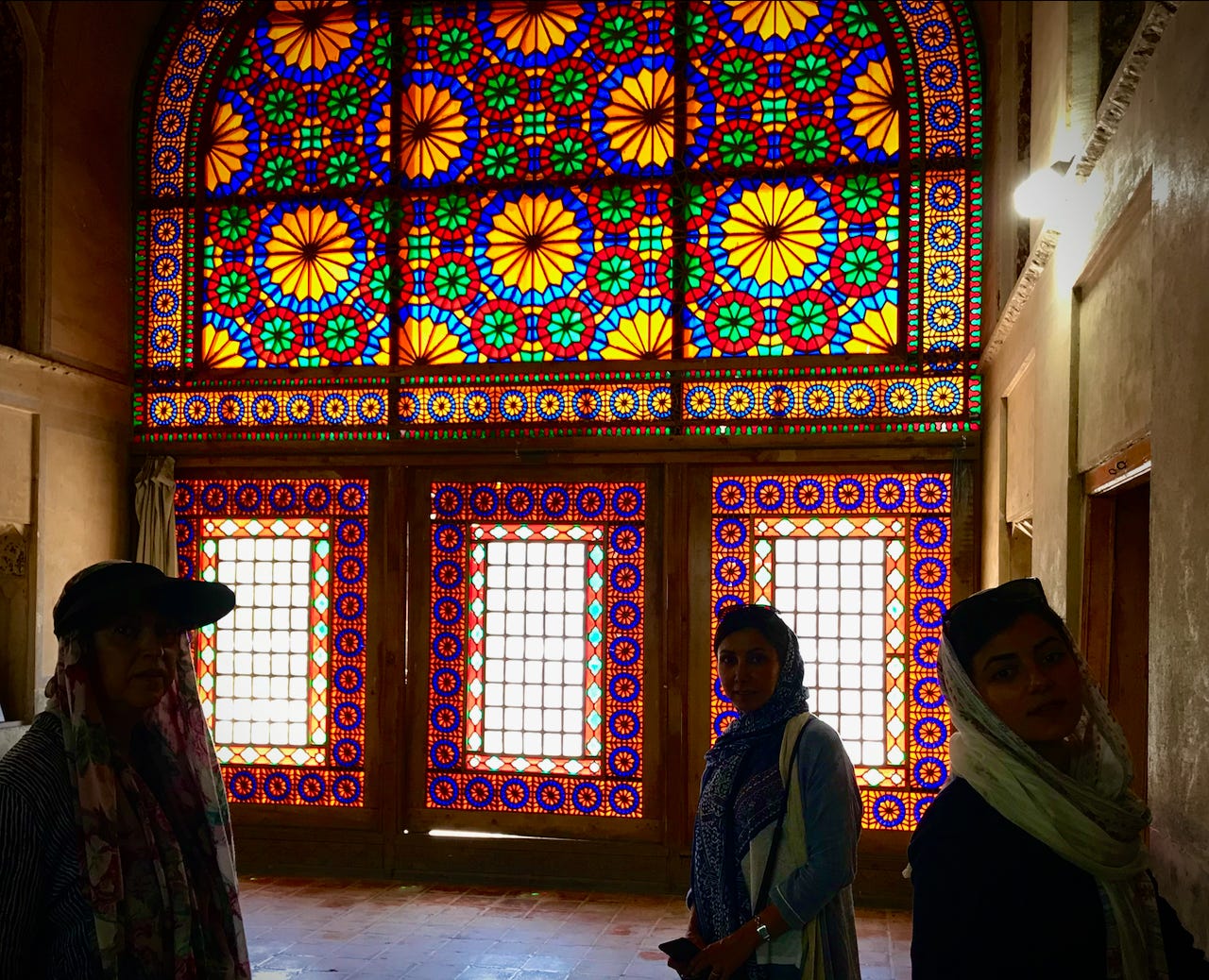 The brilliantly-colored stained glass windows of the Citadel of Shah Karim Khan, founder of the eighteenth-century Zand dynasty, in Shiraz.