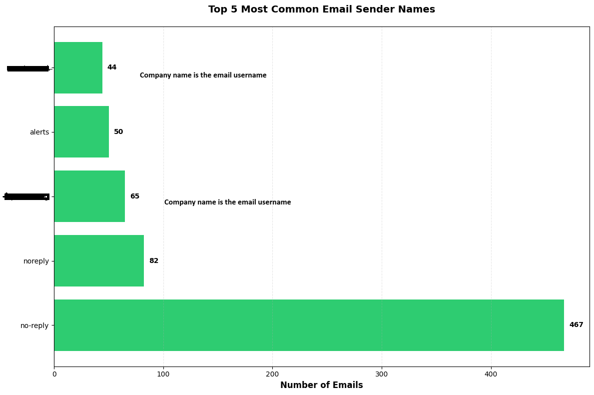 And we have ‘noreply’ and kebab case version ‘no-reply’ dominating in sender usernames.