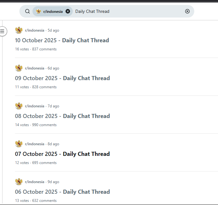 So, in r/Indonesia, there’s this thing called the Daily Chat Thread (DCT) — a recurring post where members of the subreddit can smalltalk about anything and everything.